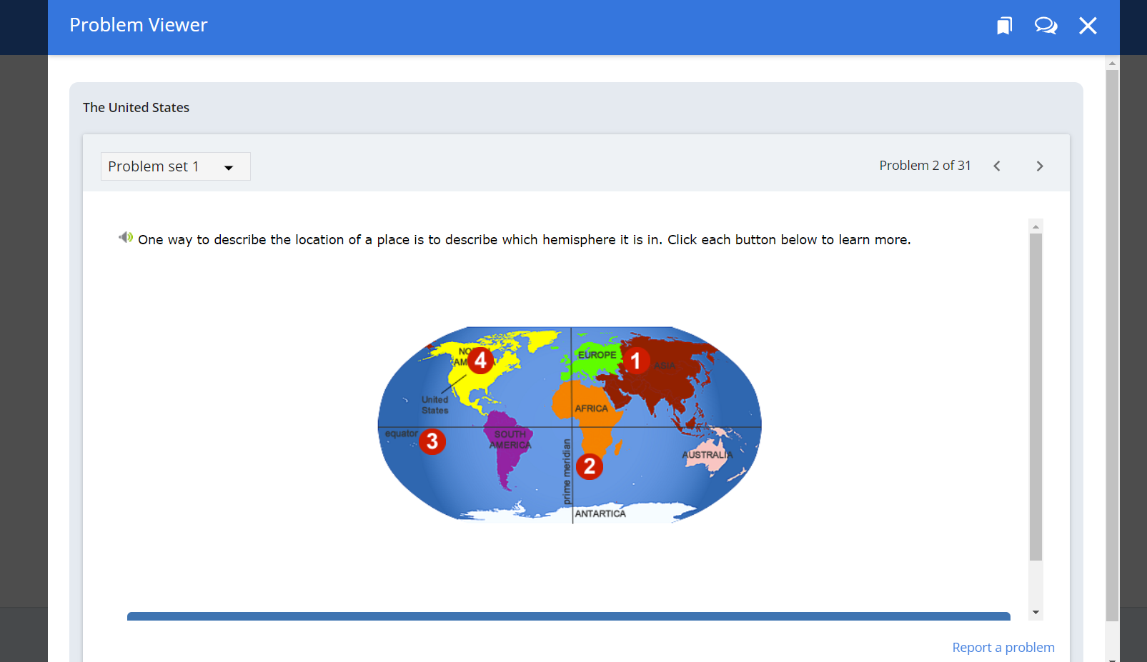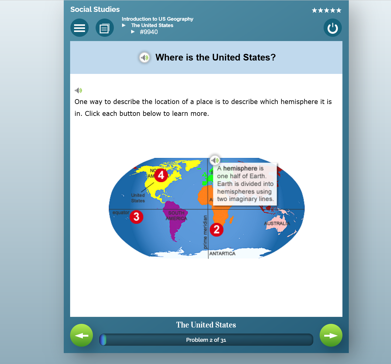 Student View: Information pops up when students click on the numbers.
